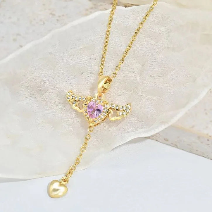 Moving Cupid Heart Angel Wings Tassel Necklace With Crystal Clavicle Chain Women Jewelry Gift Valentine's Day
